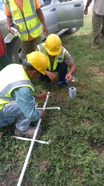 Installation de compteurs d’eau dans le cadre du projet d’approvisionnement en eau potable mis en œuvre par la BSIF à Chunox, Corozal.